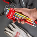 طقم مفاتيح سداسية ذراع طويل ملون من RONIX يحتوي على المقاسات الشائعة 1.5–10mm. مصنوع من فولاذ كروم فاناديوم مُعالج حراريًا مع طلاء مقاوم للصدأ ونهايات مقواة ونهايات سداسية مقطوعة مربعًا لتثبيت آمن. الذراع الطويلة توفر عزمًا وقُدرة وصول أكبر، ويُستخدم لتشديد أو فك البراغي ذات المقابس السداسية في التطبيقات الميكانيكية والتركيبات والصيانة.