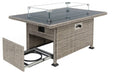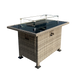 اسم المنتج بالعربي: طاولة نار مقاومة للحرارة مع سطح زجاجي وتصميم فولاذي رمادي للحدائق