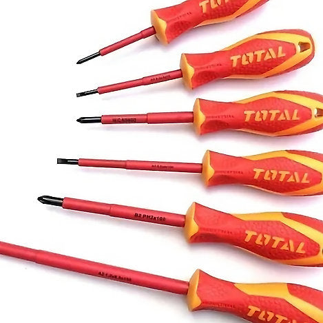 طقم مفكات 6 قطع معزول توتال حماية حتى 1000 فولت للمهن الكهربائية من Total