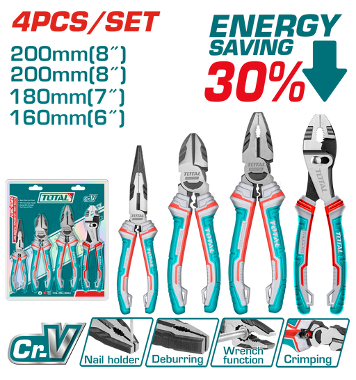 مجموعة كماشات 4 قطع من فولاذ Cr-V مع مقبض TRP وفعالية عالية 30%