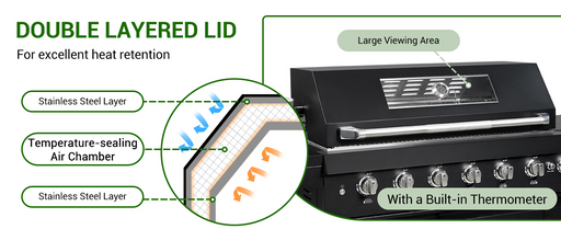 شواية غاز 6 شعلات من الفولاذ المقاوم للصدأ بقوة 99,000 BTU للاحترافية