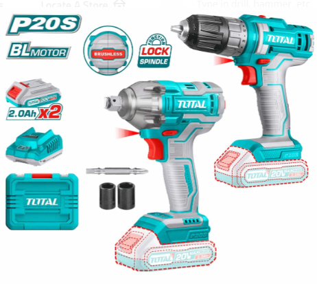 طقم كومبو دريلات شحن من توتال 2 قطعة