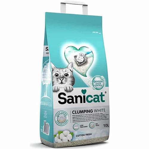 رمل قطط SANICAT متكتل بالقطن الأبيض 10 لتر