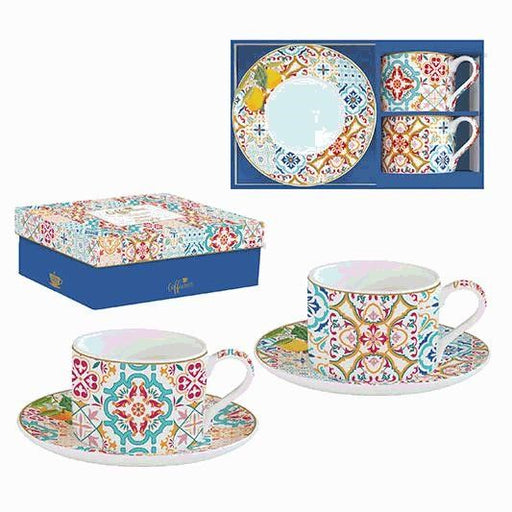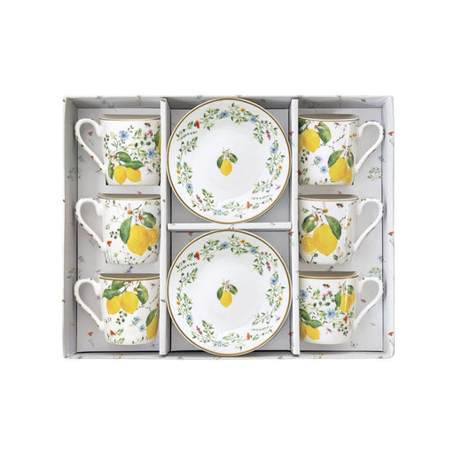 طقم فناجين قهوة 12 قطعة 100 مل بعلبة من Easy Life Fleurs et Citrons - ألوان متعددة