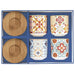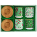 الطقم مكون من: 4 فناجين، 4 صحون.