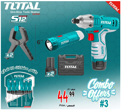 الاسم بالعربي: مجموعة (دريل + خلاط يدوي)شحن  20 فولت من توتال الاسم بالإنجليزي: TOTAL TOSLI22112 LITHIUM-ION CORDLESS 2 PCS COMBOKIT بلد المنشأ: ا...