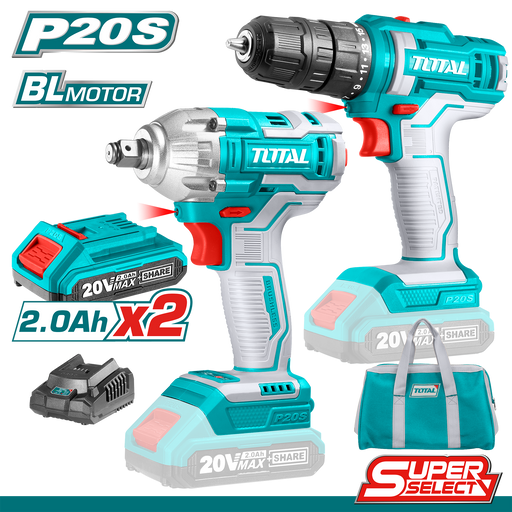 دريل شحن + دريل بوكسات مع 2 بطارية 20 فولت وشاحن من TOTAL