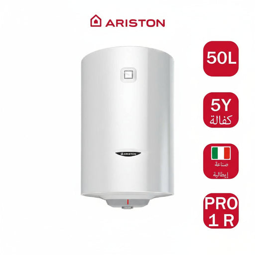 اسم المنتج: كيزر كهرباء 50 لتر عامودي PRO 1 R Ariston 2000 Watt المنشأ: إيطاليا  الشركة المصنعة: - Ariston - اريستونيشمل التركيب على البنية التحتية...