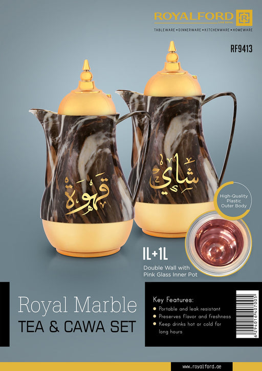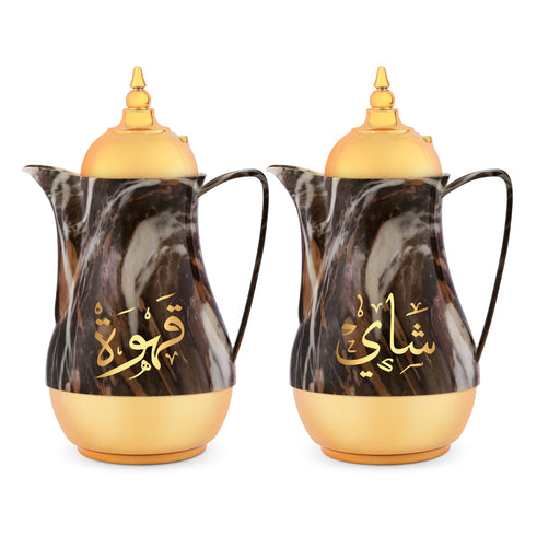 طقم دلة قهوة وشاي رخامي مزدوج الجدار سعة 1 لتر - تصميم أنيق وعزل فعّال