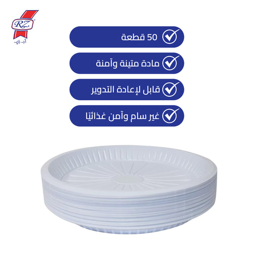 طقم صحن بلاستيك مدور ابيض عدد 50 - RZ