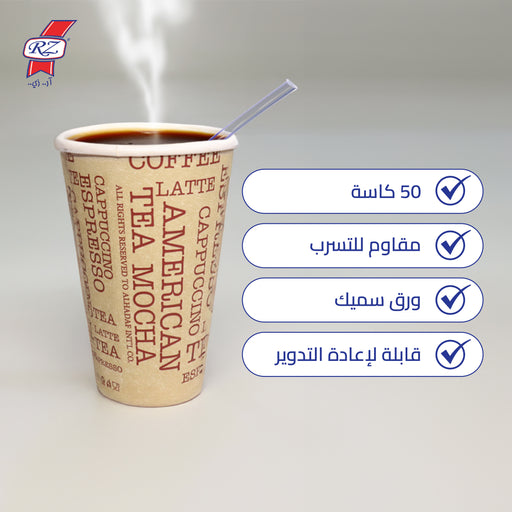 كاسات ورقية 12 اونص طويلة 50 كاسة -RZ