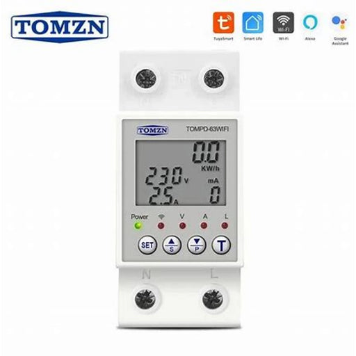 قاطع دائرة ذكي من TUYA بواي فاي قياس - 1P 63A - مع حماية فولتية وتيار