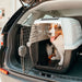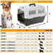 حاملة كلاب متينة ومناسبة للكلاب متوسطة إلى كبيرة الحجم، مصممة وفق لوائح IATA للسفر، مع باب حديدي مغلف بالبلاستيك وشبك 25 x 25 mm وقفل بنقطة مزدوجة، وقابلة للتفكيك للتنظيف.