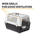 حاملة الحيوانات CARRIER ATLAS 40 GREY من ferplast مصممة للكلاب متوسطة الحجم، تجمع بين هيكل من راتنج بلاستيكي حراري صلب وباب من حديد مطلي وقفل أمني بأربع نقاط تثبيت لتوفير سفر آمن ومريح عبر وسائل نقل متعددة. يرجى التحقق من شروط شركة الطيران قبل السفر جواً.