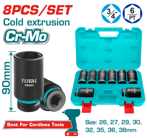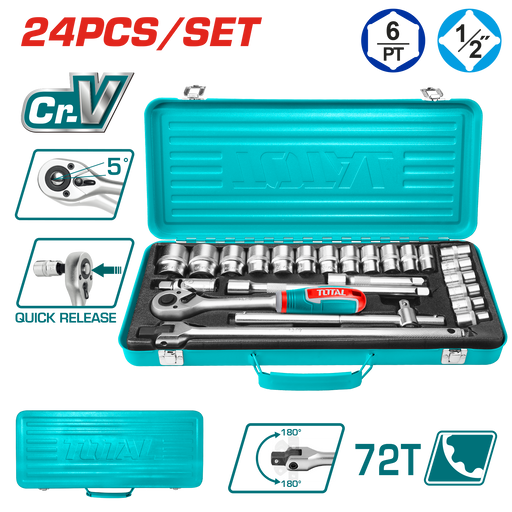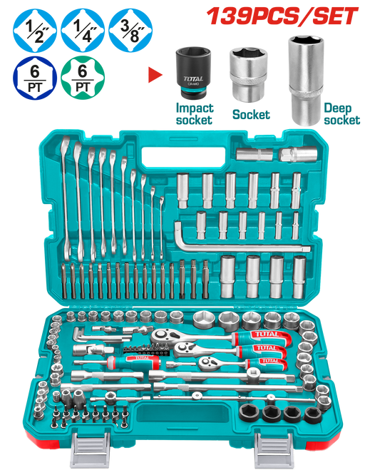 طقم وصلة دريل بوكس 1/2+3/8+1/4 من Total طوله 65-73 مم لمتانة عالية