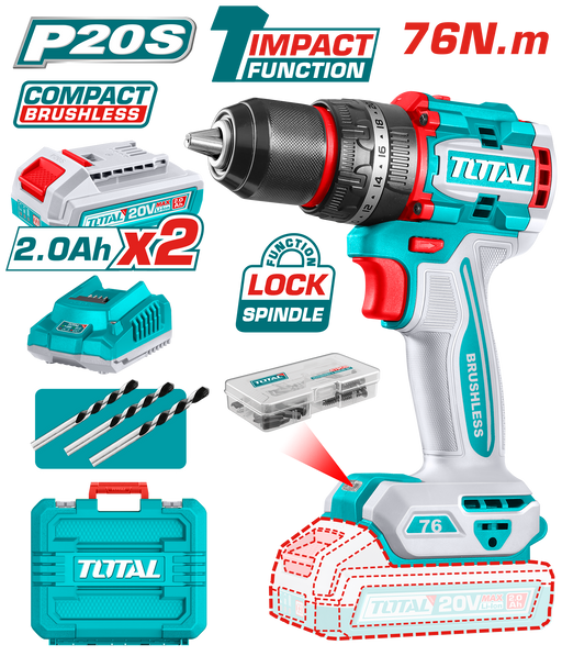 دريل شحن 42 فولت 69 نيوتن توتال مع محرك بدون فرشاة وميزة الشاكوش من Total