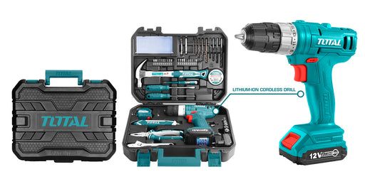 طقم دريل شحن 12 فولت ليثيوم 127 قطعة - توتال
