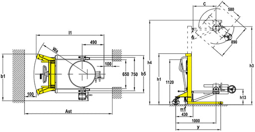 رافعة براميل يكسلين YTD-35 هيدروليكية سعة 350 كجم مع دوران 360°