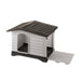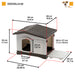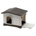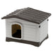 قفص خارجي للكلاب DOGVILLA 110 مصنوع من راتنج بلاستيكي حراري متين ومقاوم للصدمات والأشعة فوق البنفسجية، مزوّد بنظام فتح جانبي محمي ببراءة اختراع يتحول إلى منصة، ونظام تهوية وشقوق تصريف في القاعدة بالإضافة إلى باب جانبي بحواف ألمنيوم مقاومة للقضم، مناسب لجميع المواسم.