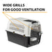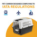 قفص نقل صلب ومجهز بميزات أمان وراحة متعددة لنقل الحيوانات الأليفة، يشمل قفلًا معاد تصميمه بأربع نقاط تثبيت، بابًا من حديد مطلي، مقبضًا قابلًا للسحب، وملحقات للتهوية والتغذية. ملاحظة: السماح بصعوده على الطائرة يخضع لسياسة شركة الطيران.
