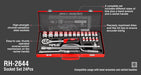 طقم بوكس احترافي من 24 قطعة من RONIX يوفر متانة عالية وعزم دوران قوي بفضل مآزره المصنوعة من كروم فاناديوم وطبقة كروم مصقولة، مع بتات مُشغّلة بدقة، قفل سريع ومقبض راشيت مُريح للاستخدام المهني في تركيب وفك البراغي والمواد المعرّضة للصدأ أو التجمد.