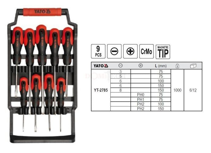اسم المنتج: طقم مفكات 9 قطع مع حمالة - ياتو