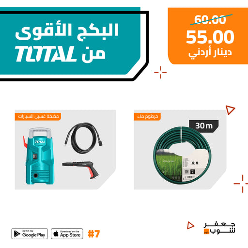 مضخة غسيل 1200 واط مع بربيش ماء 30 متر من توتال COMBO# 7