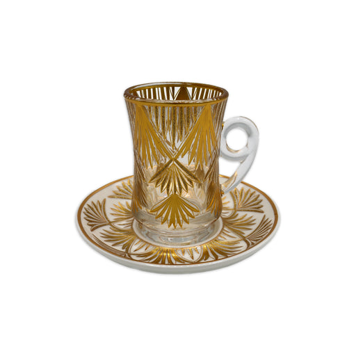 Brand: Ameco Material: Glass, Porcelain The set consists of: - 6 cups: Height 8.5 * Diameter 5.5 cm - 6 plates: 12.5 cm