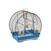 قفص صغير وجميل من طراز LUNA 1 مناسب للكناري والطيور الصغيرة، مصنوع بشبك مطلي أسود وقاعدة بلاستيكية قابلة للإزالة، ومزوّد بمقبض وملحقات (زجاجة ماء، مغذيتان Brava 1، قضبان جلوس وأرجوحة) لراحة الطيور وسهولة التنظيف.
