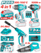 Product Name in English: TOTAL Cordless 4Pcs Combo Kit – 20V Heat Gun, Vacuum Cleaner, Pressure Washer & Impact Wrench with Accessories (TOSLI250208)