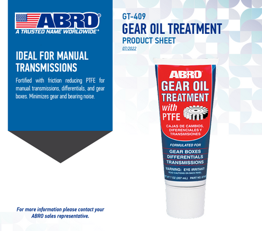 Product Name in Arabic: Abro Gear Oil Treatment ABRO Product Name in English: ABRO GT-409 Gear Oil Treatment Country of Origin: United States ...