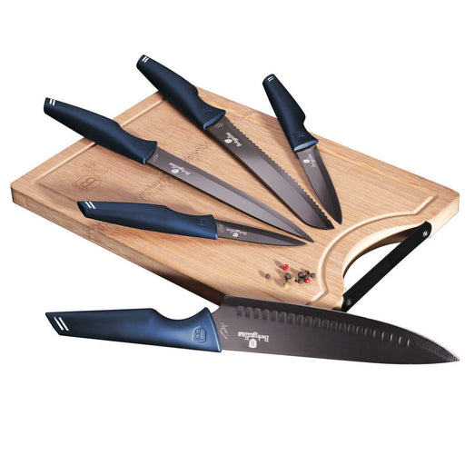 Brand Name: Berlinger Haus Material: Stainless steel with non-stick coating, bamboo cutting board Measurements: - Chef's knife: 20 cm - Bread ...