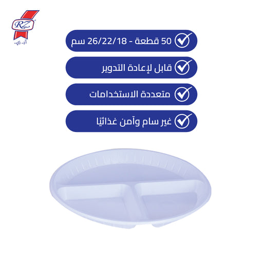 Product name in Arabic: Set of 50 plastic plates with compartments in various sizes Product name in English : Plastic Plates Round White -3 P...