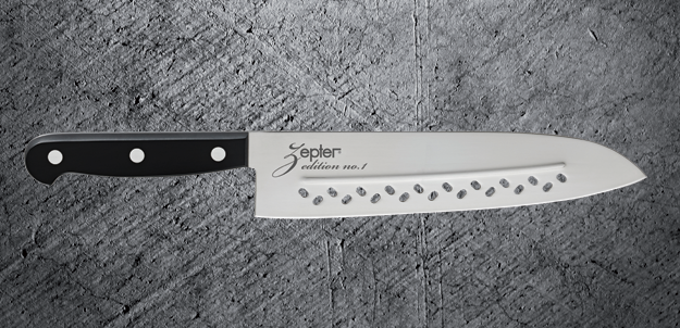 The Zepter No. 1 Santoku Knife is an essential kitchen tool for any chef. Its sharp blades make slicing any type of food quick and easy. Its innovative design ensures food does not stick to the blade, making cleanup easy. The ergonomic handle provides a secure and firm grip.