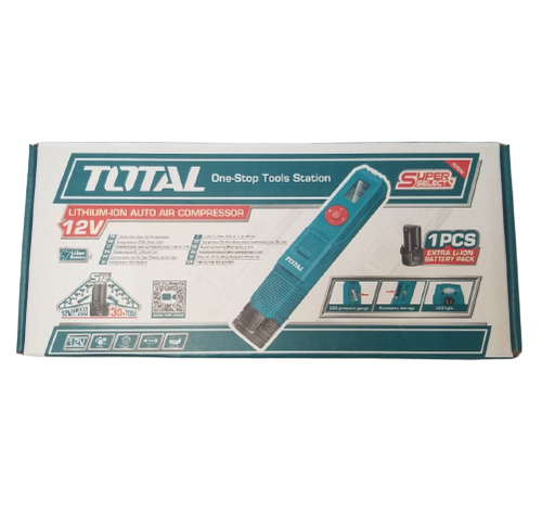 Product Name: Car Tire Pump 20V Total Charge Li-Ion Auto Air Compressor 20V – TACLI2001 Country of origin: China Manufacturer: TOTAL ...