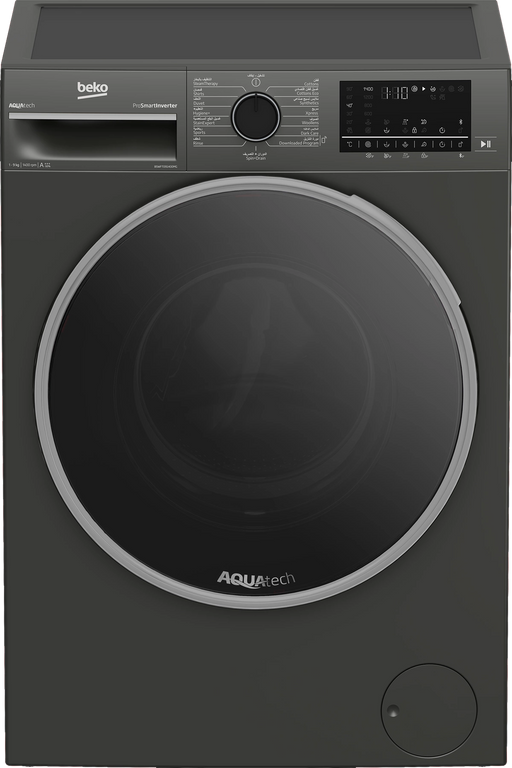 Product name in Arabic: Beko washing machine, 9 kg, gray color, 1400 rpm, 15 programs, inverter A+++ Product name in English: Beko 9kg Washi...