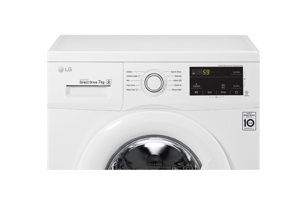 LG 7kg Front Load Washing Machine, Direct Drive Motor, 6 Motion, White
