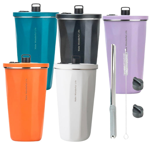 Product name in Arabic: Spill-proof stainless steel beverage container with cleaning tools, 600 ml Product name in English: Tumblers W...