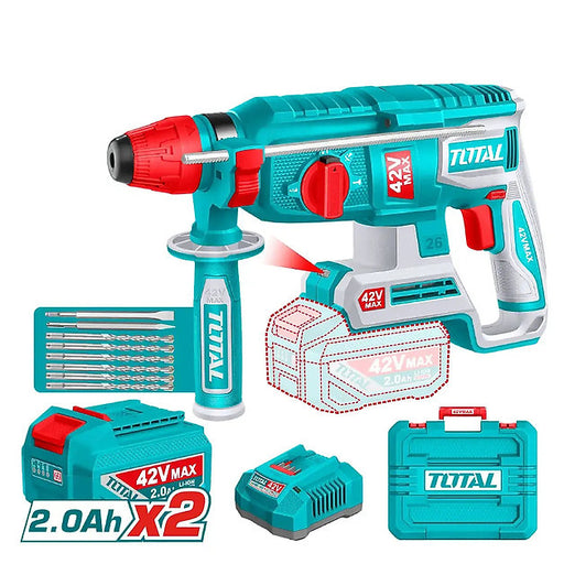اسم المنتج بالعربي: هما شحن 42 فولت توتال موتور بدون فحمات أداء قوي بتكنولوجيا ليثيوم أيون من Total اسم المنتج بالإنجليزي: Cordless rotary hammer ا...