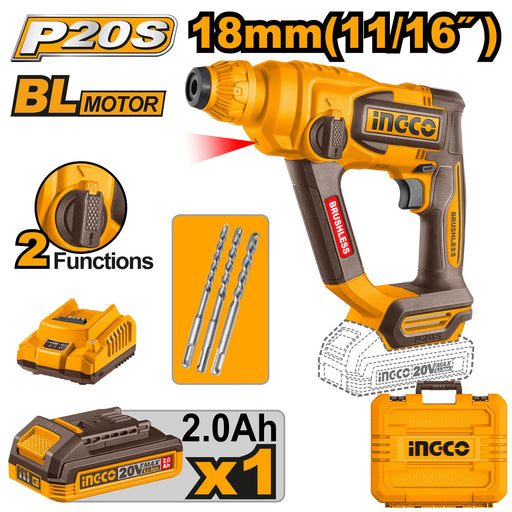 Product Name in Arabic: ENCO 20V Brushless Cordless Rotary Hammer Product Name in English: Ingco CRHLI20188 Cordless BL Li-Ion Rotary Hammer Dri...