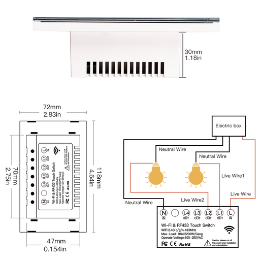 Product Name in Arabic: Wi-Fi - Smart Switch - Lamp with Lighting - US Type - White Product Name in English: Smart Wi-Fi Curtain Switch - US T...