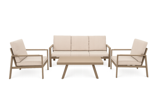 View full detailsModern Outdoor Aluminum Sofa Set with Faux Wood Coffee Table – 4 Piece