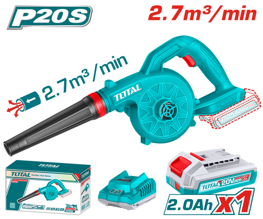 View full detailsTOTAL Cordless Blower with 2.0Ah Battery and Charger – 20V, 18000rpm, 2.7 m³/min Air Volume (TABLI20781)