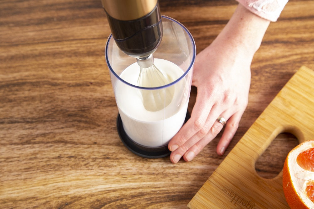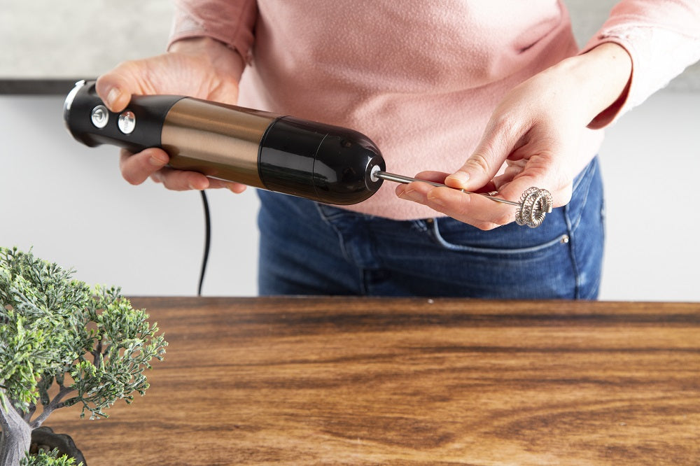 - - The operating handle works with the whisk head and milk frother (detachable and removable).