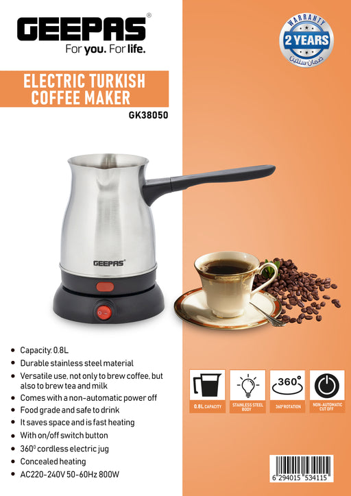 اسم المنتج بالعربي: صانعة القهوة التركية الكهربائية GK38050 من جيباس بسعة 0.8 لتر وفولاذ مقاوم للصدأ اسم المنتج بالإنجليزي: Geepas Electric Turkish...