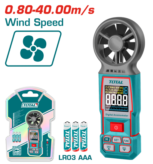 اسم المنتج بالعربي: مقياس سرعة الرياح الرقمي TOTAL - دقة 0.01 م/ث ونطاق 0.80–40 م/ثاسم المنتج بالإنجليزي: TOTAL Digital Anemometer – Air Speed Rang...