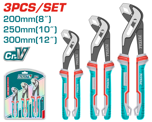 View full detailsTotal Ford 3-piece pliers set, chrome-vanadium, and comfortable TPR handles.