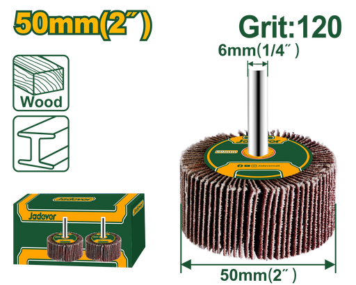 اسم المنتج بالعربي: قرص دوار JADEVER 120# للتلميع 50×25×6 مم لأسطح معدنية وخشبيةاسم المنتج بالإنجليزي: JADEVER Flap Wheel with Shaft 50 x 25 x 6mm ...