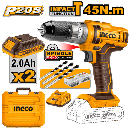 Product Name in Arabic: INGGO 20V Cordless Drill with 45 Nm Torque Product Name in English: Cordless Impact Drill Country of Origin: China B...