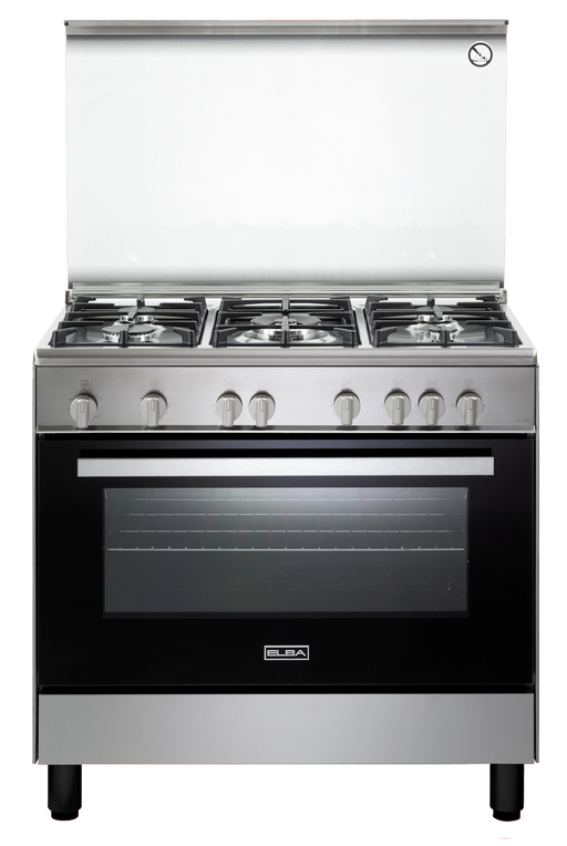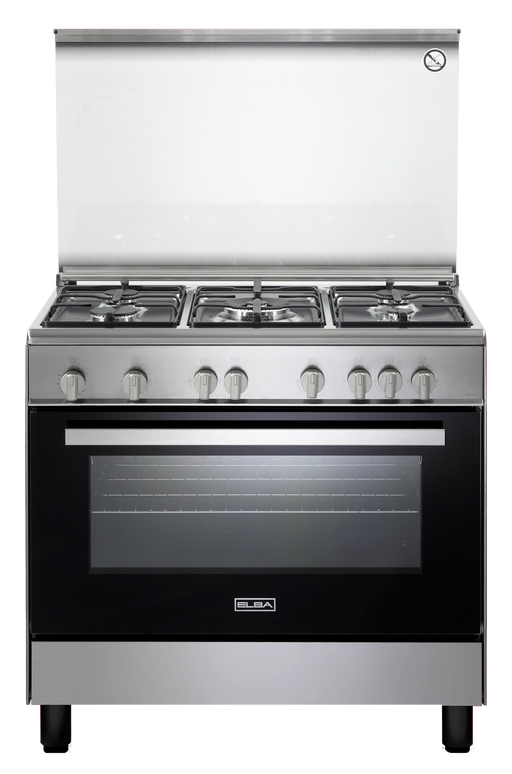 View full detailsElba 90cm gas cooker, stainless steel design, 5 burners, thick pouring racks, full safety system and fan